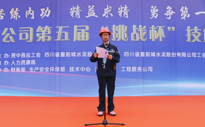 參賽選手代表袁理宣讀倡議書,要做技術“好漢”、“硬漢”和“癡漢”,不斷汲取新技術,練就新技能,敢于技術創(chuàng)新,力求技術突破,奮力為川威水泥可持續(xù)發(fā)展奉獻力量。